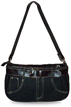 denim vrijetijdstas met aparte sluiting, blue/black, 28 cm breed, 15 cm hoog